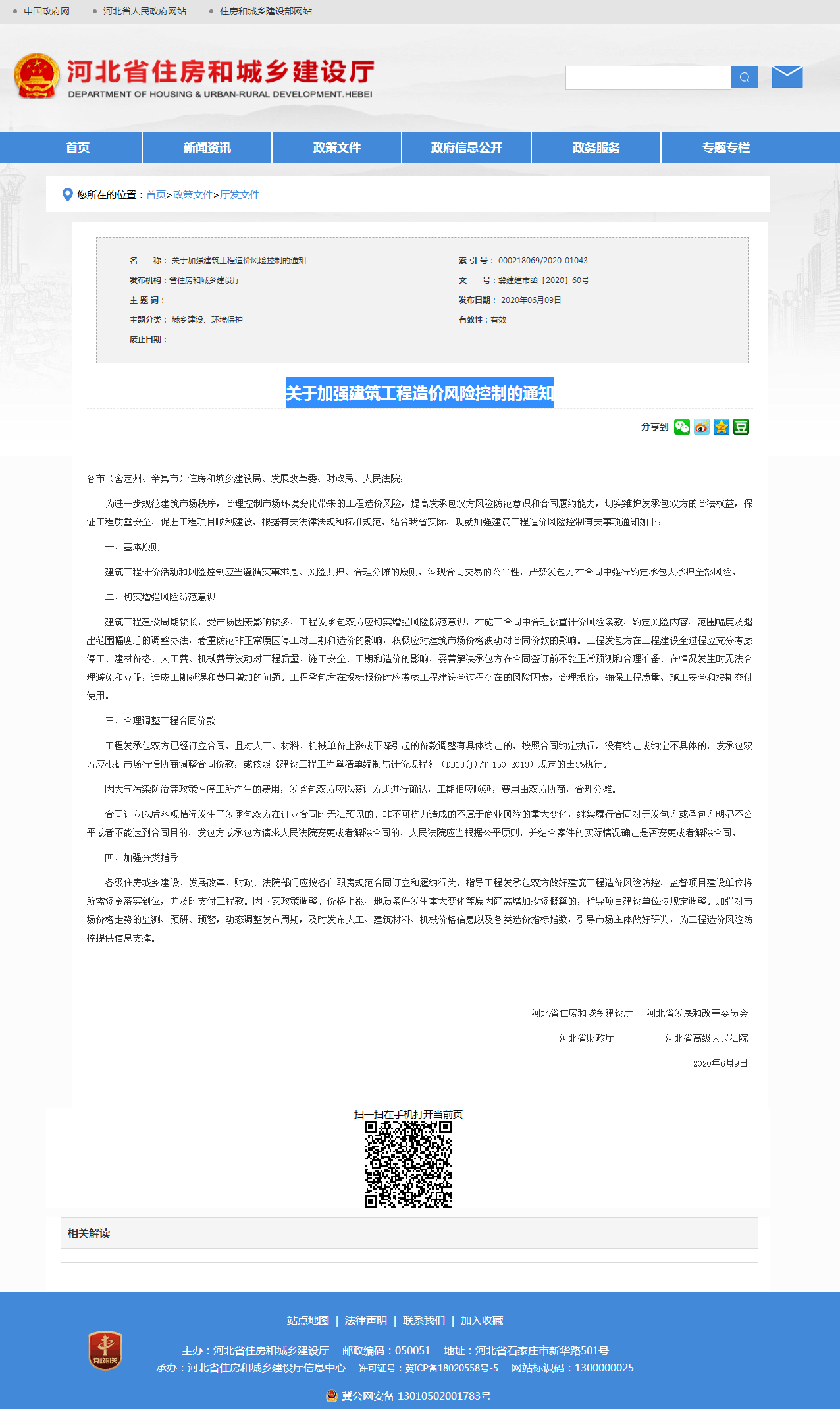 我省四部门联合印发《关于加强建筑工程造价风险控制的通知》